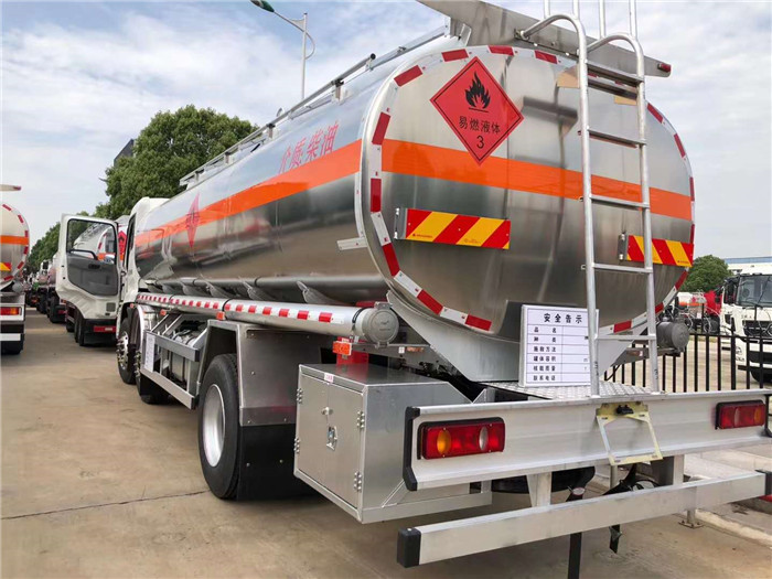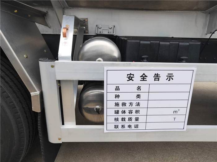 采用優(yōu)質鋁合金制作,帶山東自吸自排泵,可泵進泵出,帶歐標罐口,海底閥。 帶正星大流量加油機(加油機下掛)及15米自動回位卷盤及加油槍,帶全套歐標(一個下裝口,一個油氣回收,二個防溢流探桿及探桿座)。配一個防火帽,兩根直徑兩寸等長的輸油管,兩個滅火器,其余標配。油漆:銀粉色,貼反光條,反光帶,帶安全告示牌,三個“易燃液體”