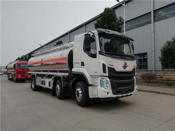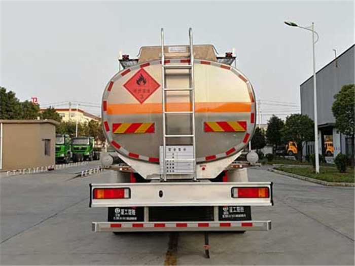 罐體材質為優質5083鎂鋁合金,罐體厚度為6毫米,7毫米水漲形封頭,罐體單倉帶泵,可泵進泵出,標配二個歐標灌口,一個海底閥(緊急切斷閥),下裝油口,油氣回收,防溢流探桿及插座,海底閥自動關閉系統,一個工具箱,罐體頂部左右加裝網狀走道帶折疊升降護欄,罐體尾部一只加寬爬梯。罐體內部每2米加裝一塊防浪板,滿載時剎車可有效減少罐體對車體的沖擊力,起到安全防護作用,全自動無縫焊接,100%通過液體滲透、氣壓檢測、探傷檢測等苛刻要求,且出具正規罐體檢測報告。兩根與罐體等長的輸油管,防火帽,接地靜電線,粘貼易燃液體貼,后部鉚接反光標志,安全告示板。